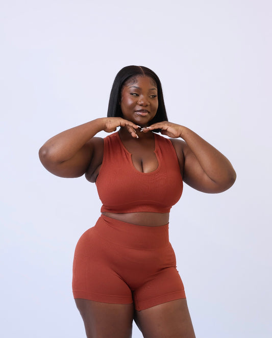 Seamless Shorts Co-ord Set in Burnt Orange